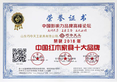 公司始終追求卓越品質(zhì),堅(jiān)持明碼實(shí)價(jià)、誠信經(jīng)營,致力于 “打造中國紅木家具第一品牌”。公司擁有自主研發(fā)團(tuán)隊(duì),傳承創(chuàng)新,引領(lǐng)市場潮流;開創(chuàng)了紅木家具制作流水線生產(chǎn)、標(biāo)準(zhǔn)化管理的先河,創(chuàng)新實(shí)施“上下工序互檢,人人都是質(zhì)檢員”的全方位質(zhì)量控制體系,確保每一件產(chǎn)品都是精品、藝術(shù)品、收藏品。